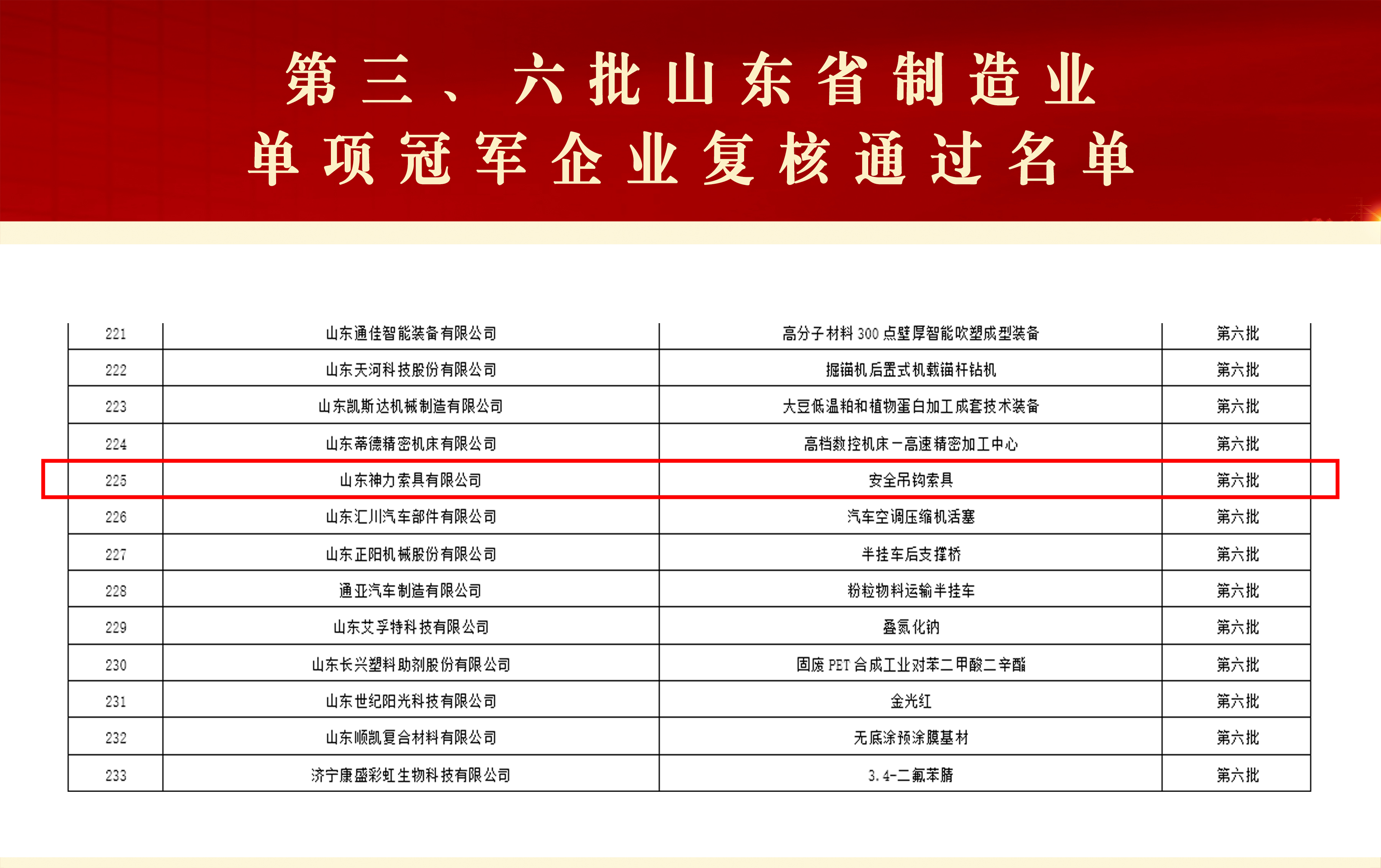 近日,2025年山東制造魯鏈優(yōu)品首批名單正式公示,山東神力索具有限公司憑借卓越的產(chǎn)品質(zhì)...