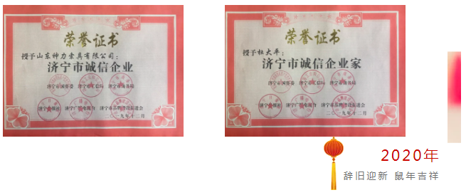 12月31日,在即將收官的2019年最后一天,我們企業(yè)獲得了由市國資委、市工信局、市商務局、市廣播電臺、市日報社、市品牌促進會聯(lián)合授予的"濟寧市誠信企業(yè)"榮譽稱號;總經(jīng)理杜大平榮獲"濟寧市誠信企業(yè)家"榮譽稱號!這就是我們神力人告別2019年、迎接2020年,最好的方式呀 !