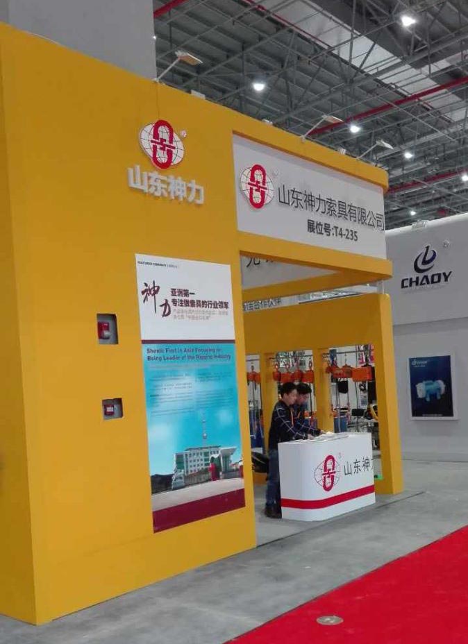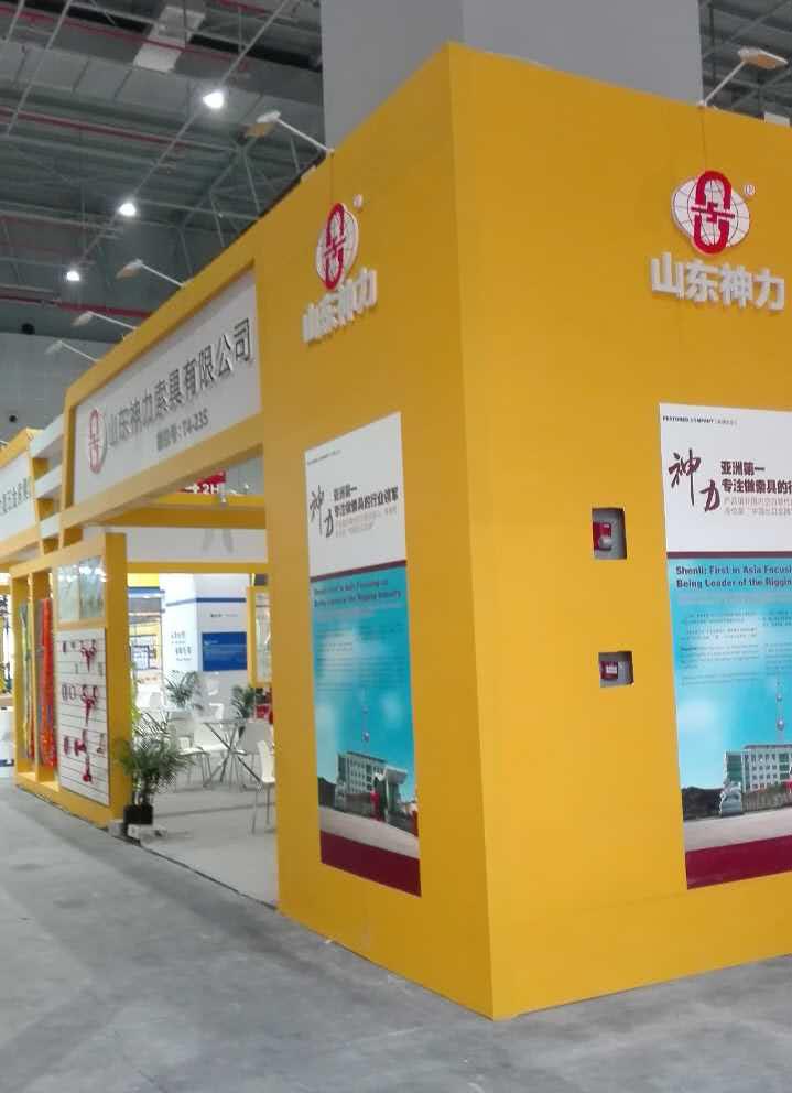 山東神力索具公司展出的部分產品有:G100 G80雙環扣、G100 G80吊鉤抓鉤翅鉤、卸扣、起重鏈條、成套吊具、普通索具,強力環子母環,D型環焊接吊環,旋轉吊環,旋轉鉤,安全鉤等。并邀請了本公司眾多國內外客戶前來展會現場洽談業務。