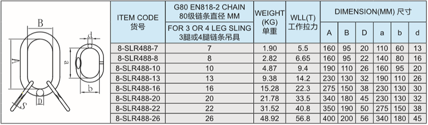 ◇ 用于G80 3腿或4腿鏈條吊具.