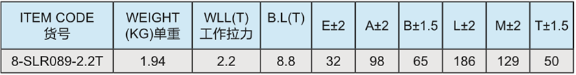 ◇ 與吊帶和EN818-2標準80級鏈條配合使用。